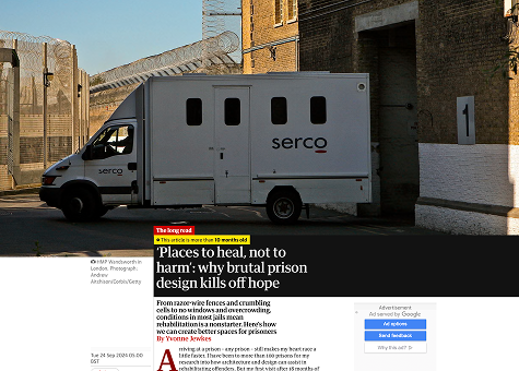 With colleagues in the UK and USA, I published an edited collection The Palgrave Handbook of Prison Design which brings together expertise from around the world and from a range of disciplinary perspectives to address a key question facing prison policymakers, architects and designers – what kind of carceral environments foster wellbeing, and deliver positive outcomes and a rehabilitative, therapeutic environment?